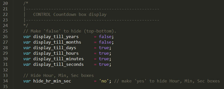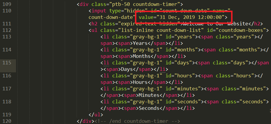 Open scripts.js from js folder. You will see the code that you will be need to customize count-down boxes. It's supper easy!